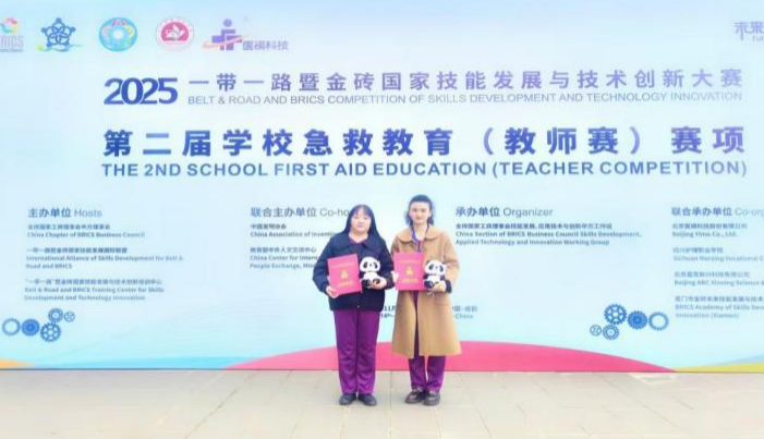 11月14日—17日,《2025一带一路暨金砖国家技能发展与技术创新大赛之第二届学校急救教育(教师赛)》决赛在四川成都圆满落幕。本次大赛汇聚全国众多院校103支优秀教师队伍同台竞技(医卫组75支、非医卫组25支,国际组3支),竞争异常激烈。我校教师凭借扎实的专业功底、娴熟的实操技能和沉稳的临场表现,展现出良好的专业素养与教学风采,斩获优胜奖。