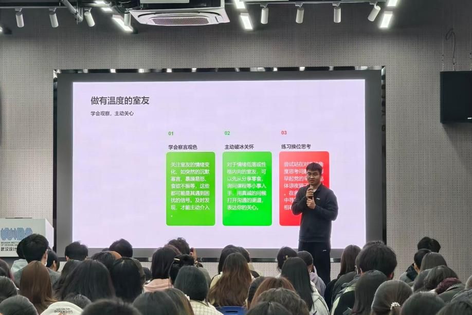 做有温度的室友:培训倡导寝室长要学会“察言观色”,关注室友的情绪变化(如突然沉默、暴躁等),通过分享、主动问候等小事“破冰”,用换位思考化解生活习惯的差异。